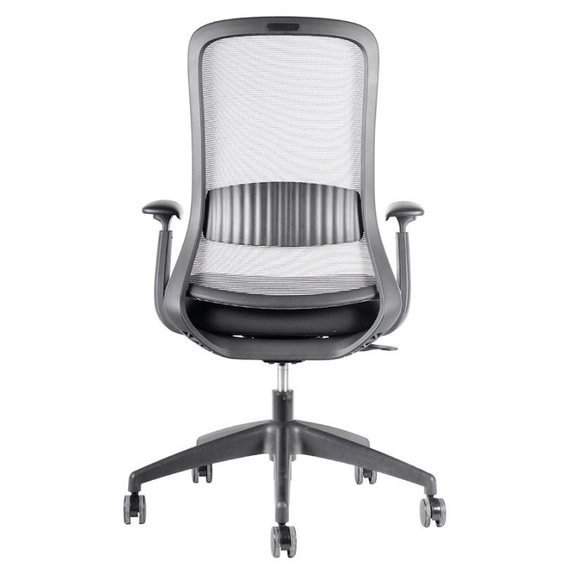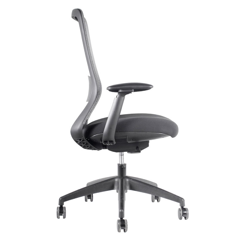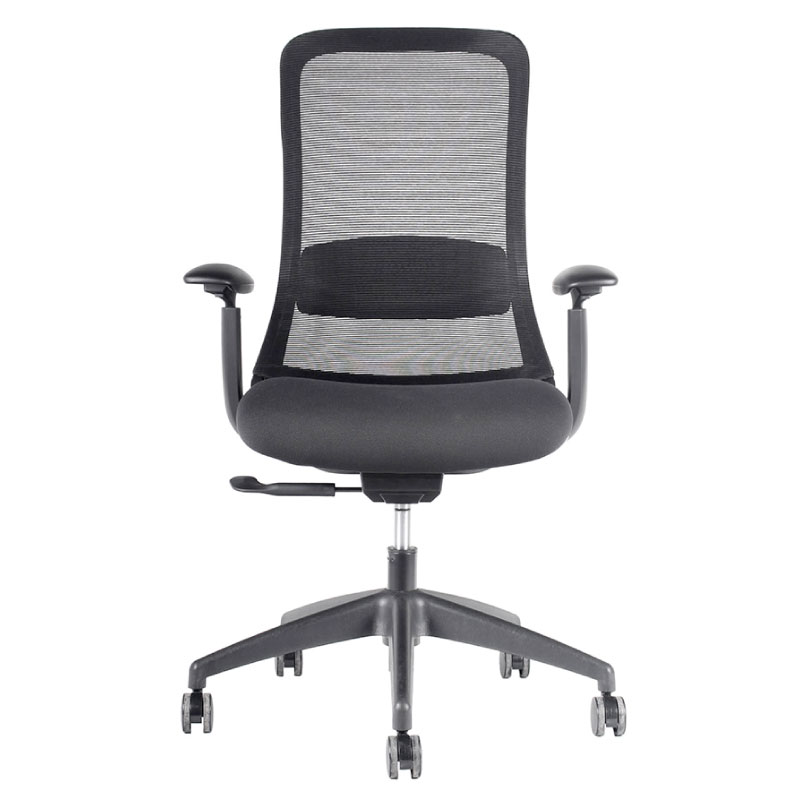 Silla Operativa, mecanismo sincrónico con cuatro posiciones de bloqueo y sistema de tensión autopesante. Respaldo de malla con soporte lumbar fijo, apoyabrazos de PU ajustable en altura, ángulo y profundidad (3D). Asiento de espuma inyectada tapizado. Gas de 120 mm., base de nylon de 660 mm. y ruedas PU negro de 60 mm. *Opción : con Cabecero en versión malla negra.