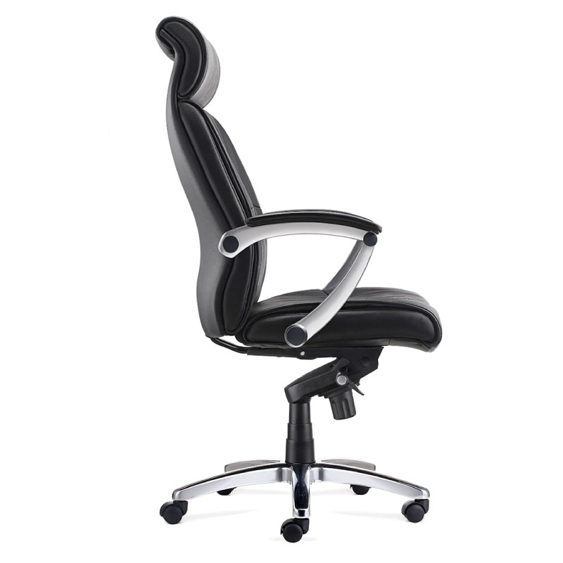 Sillón Ejecutivo, en PU con mecanismo de reclinación de centro adelantado y fijación en múltiples posiciones. Sistema de tensión regulable. Apoya cabeza fijo de PU en continuación delrespaldo de PU con apoyo lumbar fijo. Asiento de PU con espuma inyectada. Gas de 80 mm., base de aluminio pulido de 700mm. Y ruedas de PU negras de 50mm.